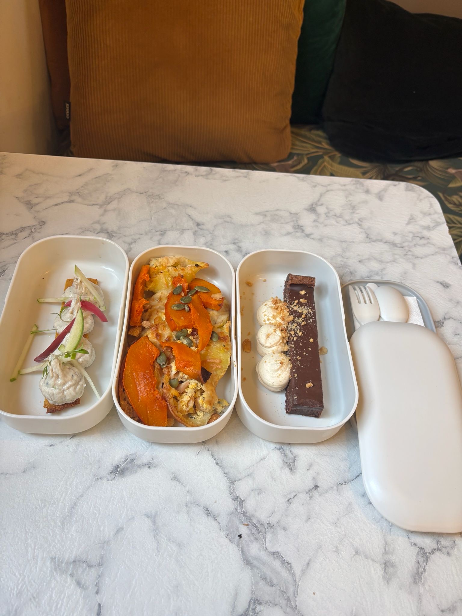 Si vous préférez voir les plateaux repas et leur contenu avant de les acheter, vous pourrez également emporter celui-ci, directement chez vous ou au bureau.
