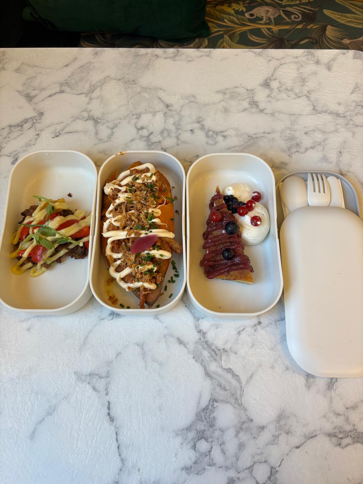 Votre plateau repas vous sera livré dans un bento à 3 étages qui est consigné et qui comprend votre menu :